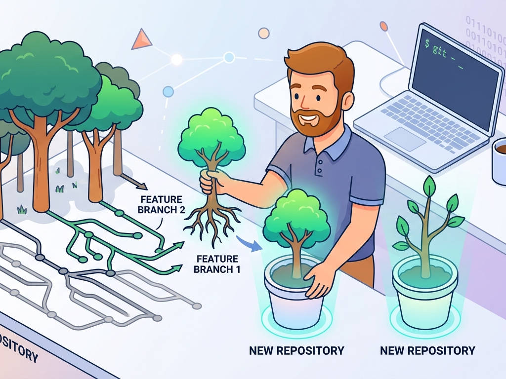 特に、一つの大きなリポジトリの中で複数の実験的な機能(featureブランチ)を並行開発していたものの、その一部が予想以上にスケールし、「これは単独のプロジェクトとして独立させたほうが管理しやすいな」と判断する場合などです。