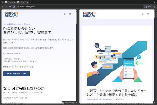 Chromeの左右分割も進化の一歩ではありますが、Edgeの「上下分割」を知ってしまうと、もうChromeの不便さが明白になります。